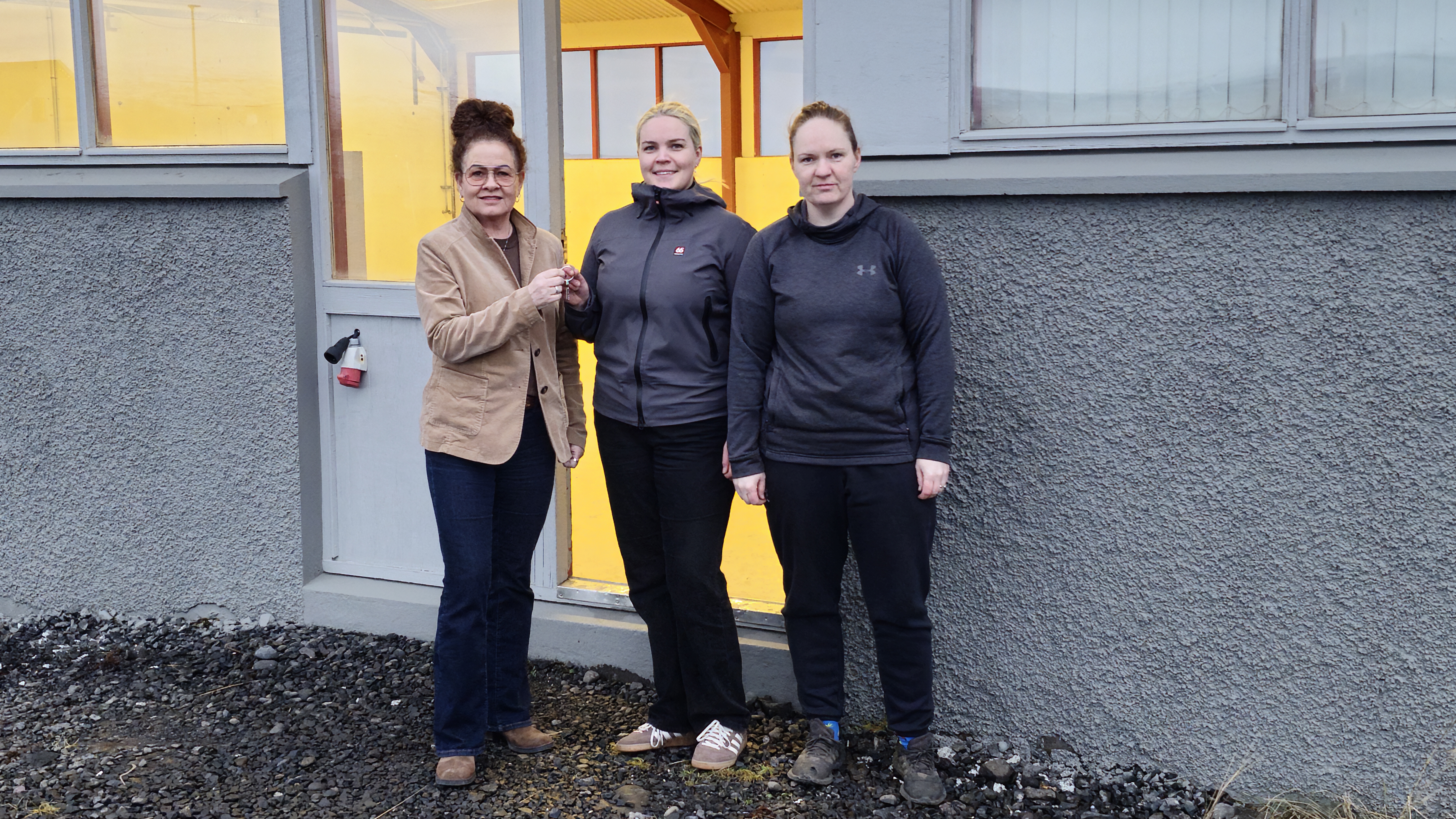 Rakel og Hulda Þorgilsdætur afhenda Þórunni Sif Harðardóttur sveitarstjóra lykilana.